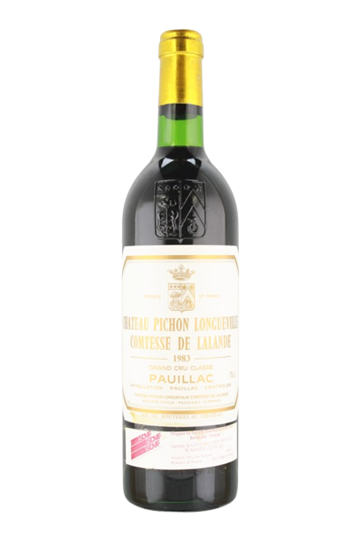 Chateau Pichon Longueville Comtesse de Lalande 1983 750 ML is a distinguished Bordeaux red wine from the Pauillac appellation, crafted by one of the most respected estates in the Médoc region. This wine is a blend of Cabernet Sauvignon, Merlot, and Cabernet Franc, showcasing the classic characteristics of a top-tier Bordeaux. Chateau Pichon