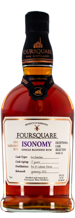 Foursquare Isonomy Rum 750 ML bottle aged 17 years in ex-bourbon casks.