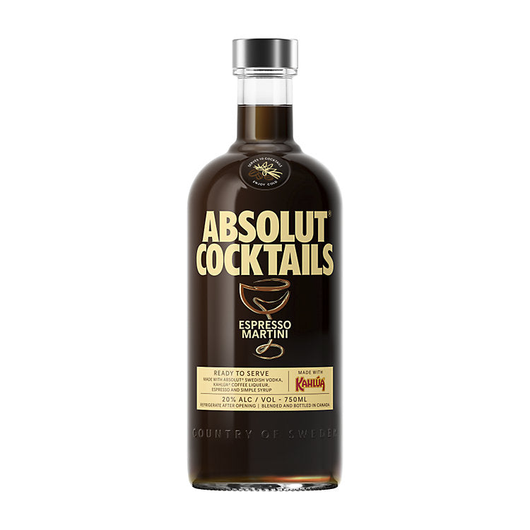Absolut Espresso Martini Cocktail 40 750 ML. This bar-quality classic brings the perfect blend of rich Arabica coffee, premium Absolut vodka, and a hint of sweetness in every pour. With Absolut Espresso Martini Cocktail 40 750 ML, you can enjoy the velvety, bold flavors of a freshly mixed espresso martini right from the bottle, making it effortless to entertain or unwind. Each sip of Absolut Espresso Martini Cocktail 40 750 ML offers notes of roasted coffee beans and creamy chocolate, finished with a balanced sweetness and a smooth texture.