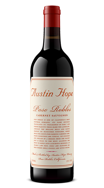 Austin Hope Cabernet Sauvignon Paso Robles 2022, a full-bodied and richly structured wine from Paso Robles. Crafted from 100% Cabernet Sauvignon grapes grown across seven distinct AVAs, this wine offers layers of ripe blackberry, cassis, and dark fruit held together by elegant Italian oak influence. The deep ruby hue and inviting aroma display black cherry, vanilla, and a touch of smoky burnt sugar, making Austin Hope Cabernet Sauvignon Paso Robles 2022 a standout vintage for both enthusiasts and collectors .