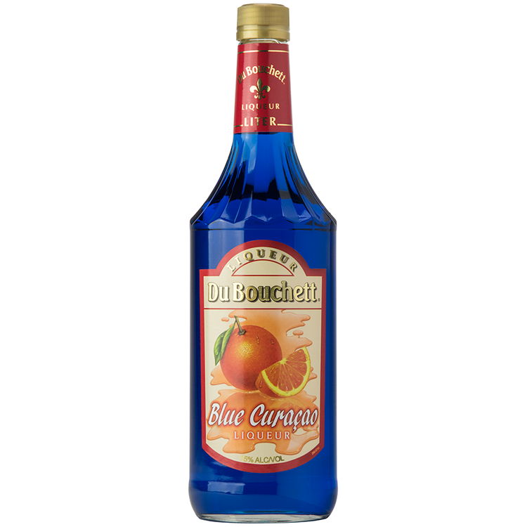 Du Bouchett Curacao Blue liqueur bottle, 1L, featuring a blend of orange, lemon, and Curacao fruit flavors for cocktails.